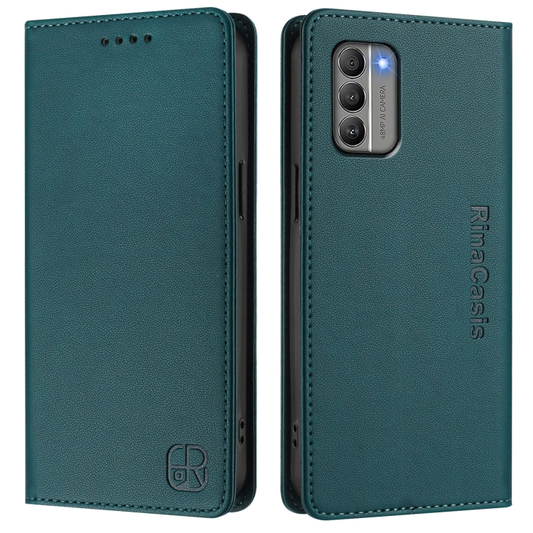 Funda de Cuero con Doble Pliegue y Succión Magnética RFID para Nokia G400 Rc01 (Verde Oscuro)