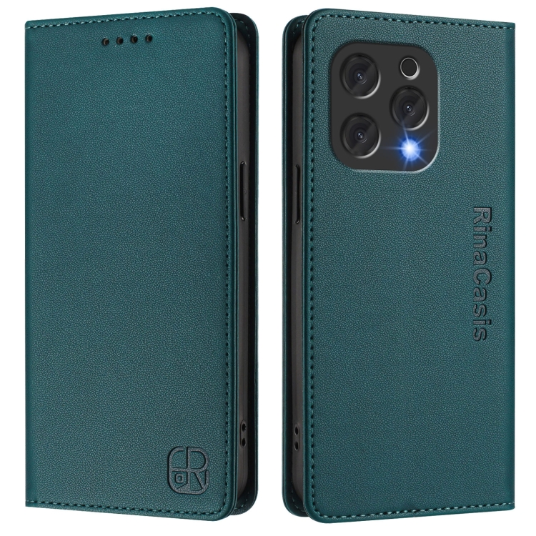 Funda de Cuero Doogee N55 Plus Rc01 con Doble Pliegue y Succión Magnética Rfid (Verde Oscuro)