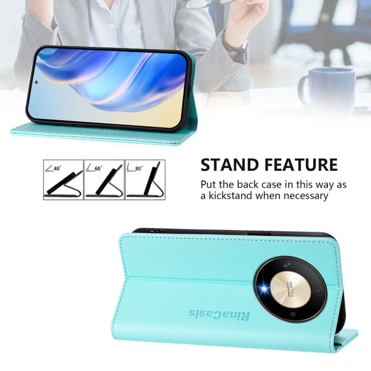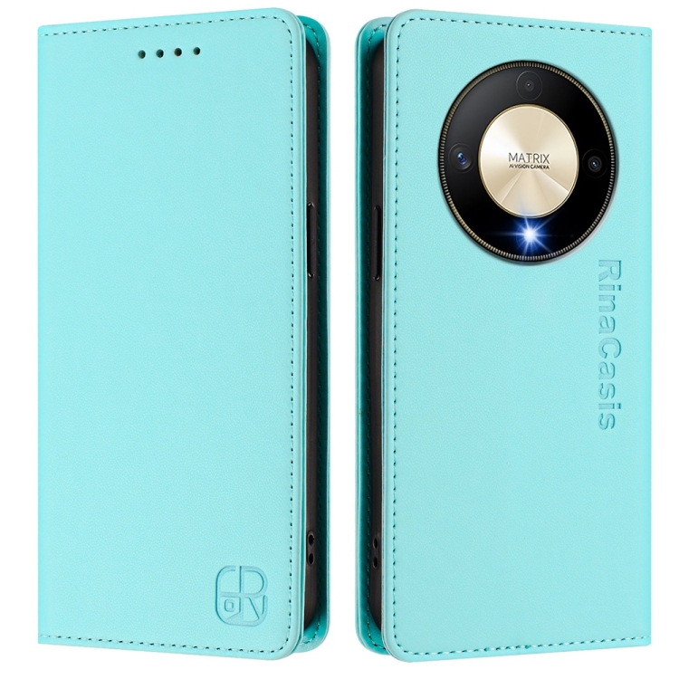 Funda de Cuero con Doble Pliegue y Succión Magnética Rfid para Honor X9B Magic6 Lite 5G (Verde Menta)