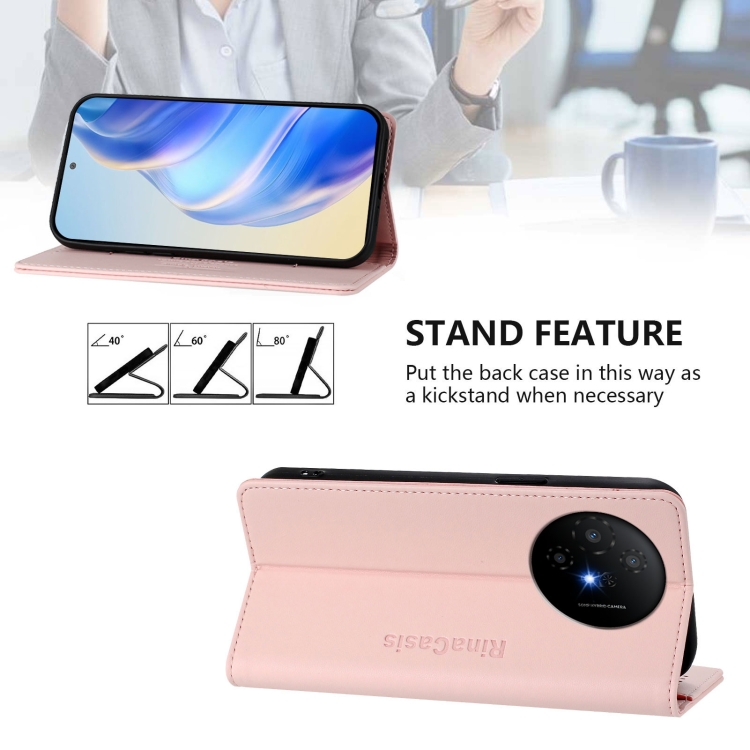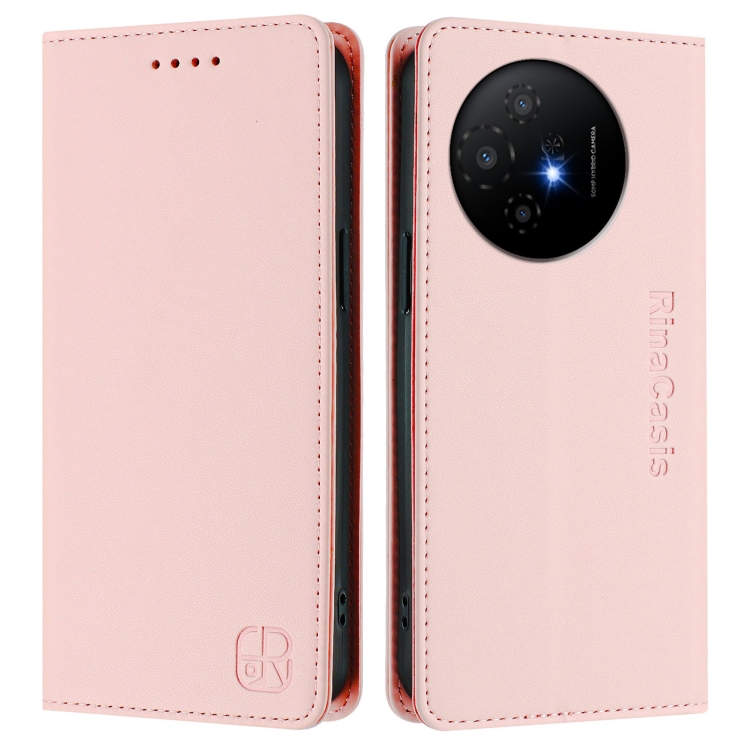 Funda de Cuero para TCL 50 Xl 5G Rc01 con Doble Pliegue y Succión Magnética Rfid (Rosa)