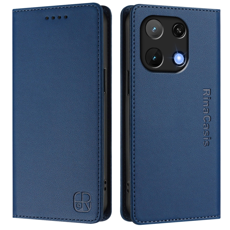 Funda de Cuero con Doble Pliegue y Succión Magnética Rfid para Umidigi Note 90 Rc01 (Azul Oscuro)