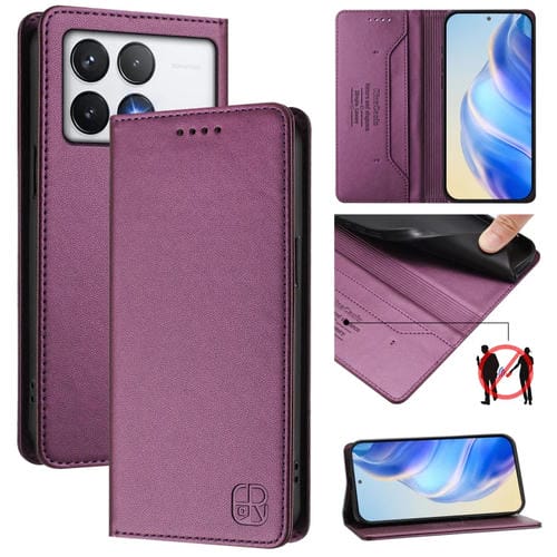 Funda de Cuero con Doble Pliegue y Succión Magnética Rfid para Xiaomi Poco F6 Pro 5G Rc01 (Violeta)