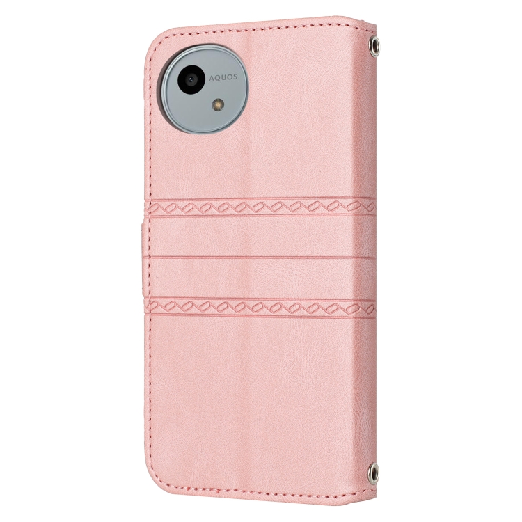 Funda de Cuero para Sharp Aquos Wish 4 con Efecto Piel y Rayas en Relieve (Rosa)
