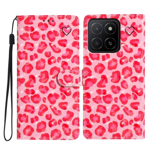 Funda de Cuero para Honor X5B 4G con Estampado 3D Leopardo Rosa
