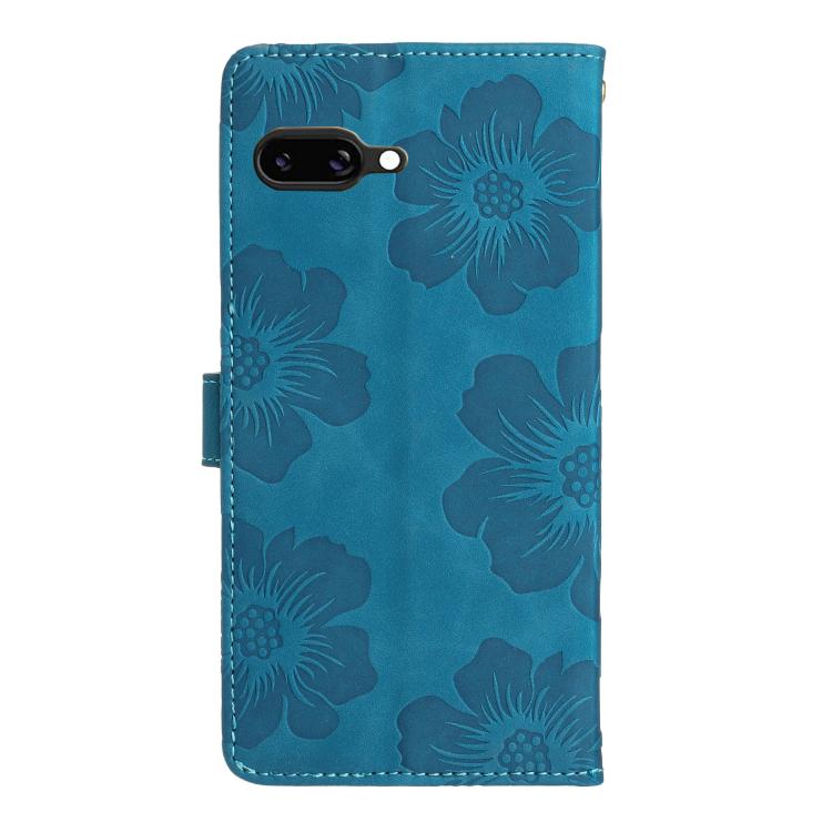 Funda de Cuero con Estampado de Flores en Relieve para Google Pixel 9A (Azul)