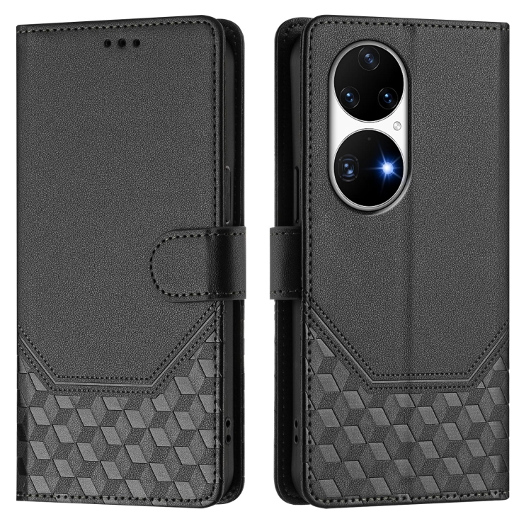 Funda de Cuero con Estampado de Panal Rfid para Huawei P50 Pro (Negra)