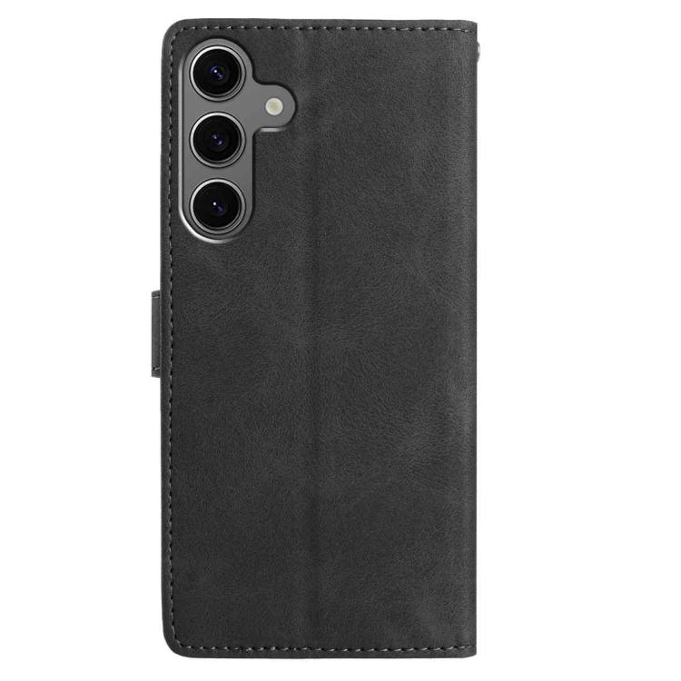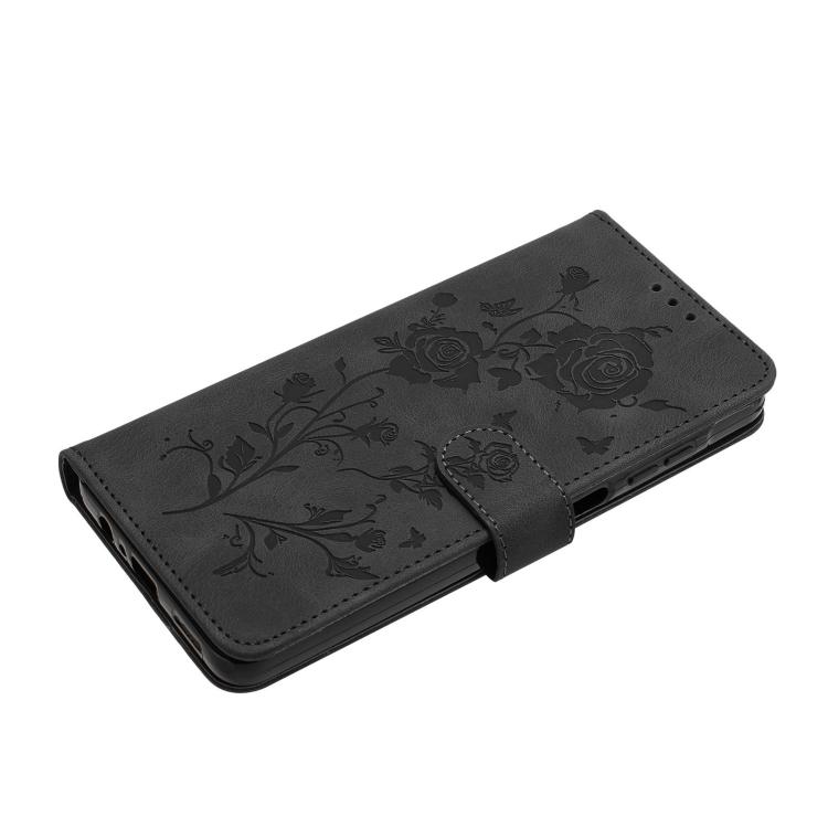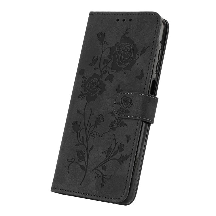 Funda de cuero con estampado de rosas en relieve para Samsung Galaxy S25+ 5G (negra)