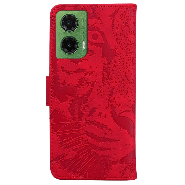 Funda de Cuero para Motorola Moto G35 con Estampado de Tigre (Rojo)