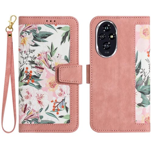 Funda de Cuero con Estampado Floral y Cordón para Teléfono For Honor 200 (Rosa)