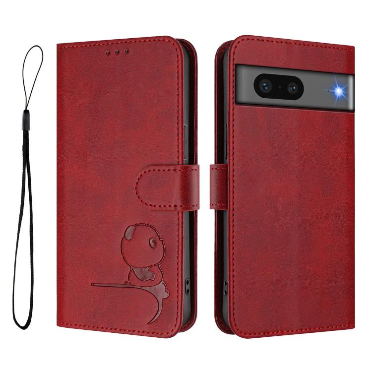 Funda de cuero con estampado RFID y cordón para Google Pixel 7 (rojo vino)
