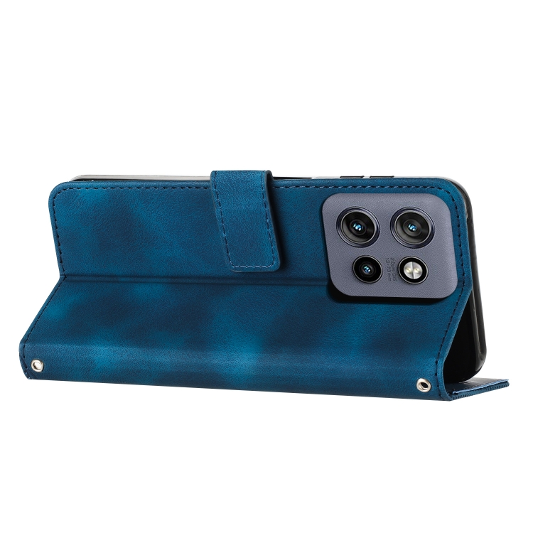 Funda de Cuero Triangular Dream para Motorola Edge 50 Neo con Cordón (Azul)