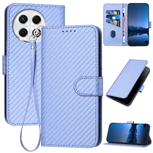 Funda de Cuero con Hebilla de Fibra de Carbono para Tecno Spark 30 Pro 4G Yx0070 con Cordón (Morado Claro)
