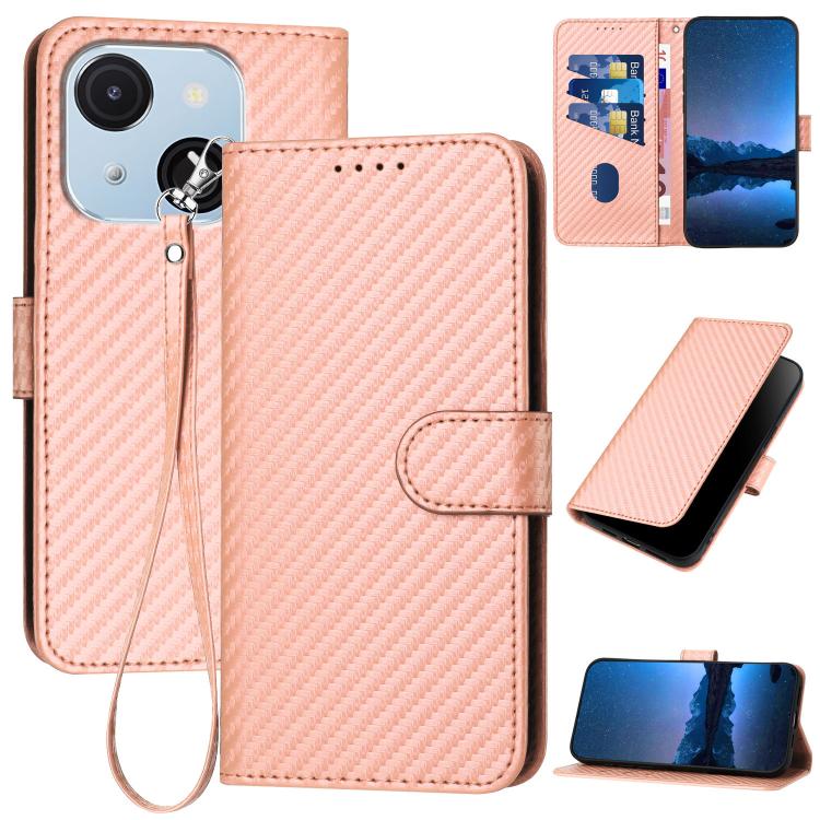 Funda de Cuero con Hebilla de Fibra de Carbono y Cordón para Teléfono Itel A50C Yx0070 (Rosa)