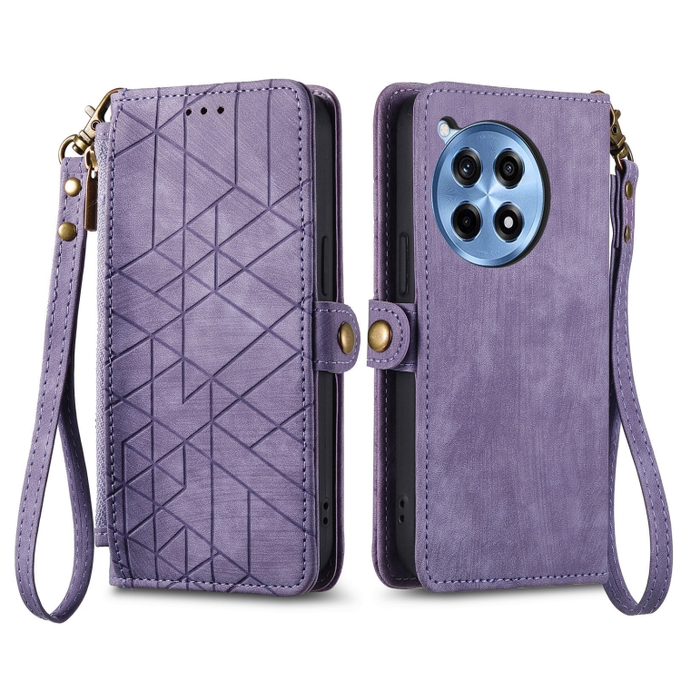 Funda de Cuero para OnePlus Ace 3 Pro con Hebilla Lateral y Cierre Geométrico (Morado)