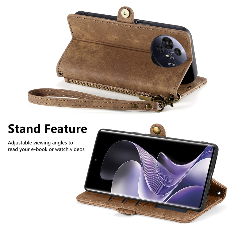 Funda de Cuero Nxtpaper para TCL 50 Pro con Hebilla Lateral y Cremallera Geométrica (Marrón)