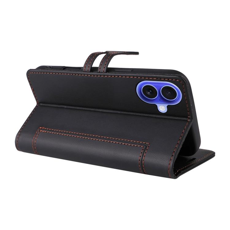 Funda de cuero con hebilla magnética cosida para iPhone 17 (negra)
