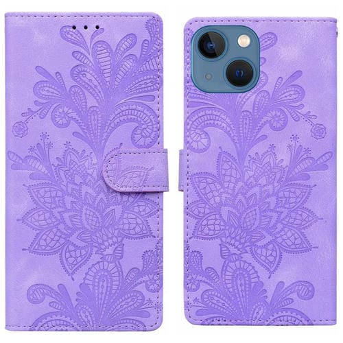 Funda de Cuero para iPhone 13/14 con Hebilla Magnética y Diseño Floral (Morado)