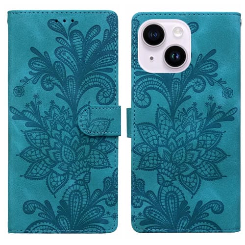 Funda de Cuero para iPhone 14 Plus/15 Plus con Hebilla Magnética y Diseño Floral (Verde)