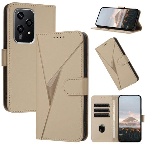 Funda de Cuero con Hebilla y Diseño de Triángulos para Honor 200 Lite (Dorada)