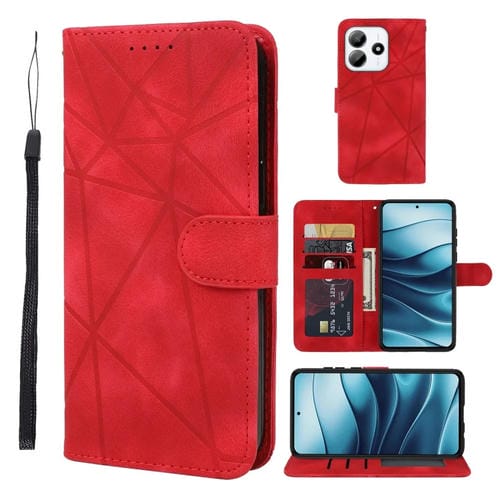 Funda de Cuero con Líneas Geométricas y Tacto de Piel para Redmi Note 14 5G (Rojo)