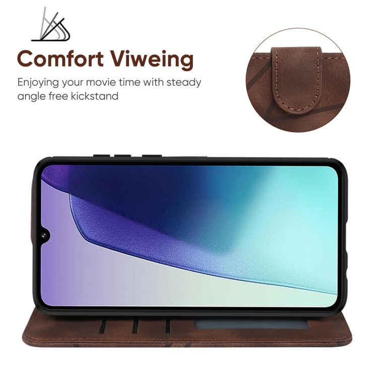 Funda de Cuero con Líneas Geométricas y Tacto Sedoso para Samsung Galaxy A36/A56 5G (Marrón)