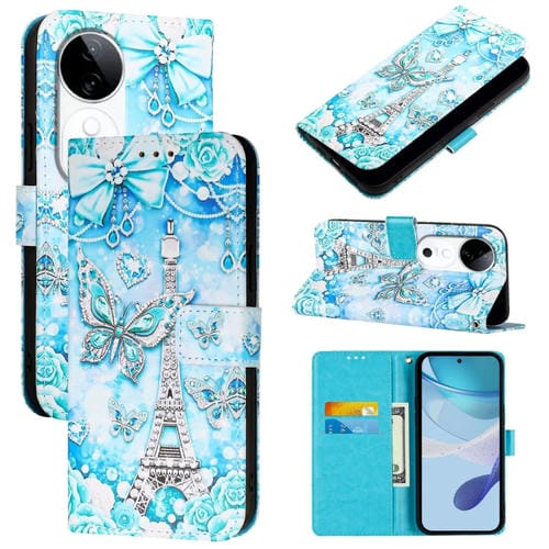 Funda de Cuero con Patrón de Dibujo de Colores para Vivo S19 (Mariposa En Forma de Torre)