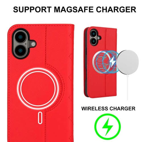 Funda de cuero con protección RFID antirrobo Rhombic MagSafe para iPhone 17 (roja)