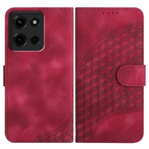 Funda de Cuero con Relieve Cabeza de Elefante para Motorola Moto G 2025 con Cordón (Rosa Rojo)