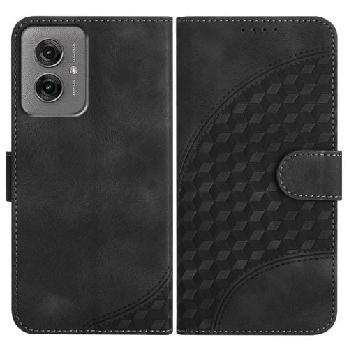 Funda de Cuero con Relieve Cabeza de Elefante para Motorola Moto G55 Yx0060 con Cordón (Negro)