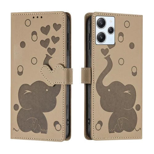 Funda de Cuero con Relieve de Elefante de Dibujos Animados para Redmi 12 4G/5G (Caqui)