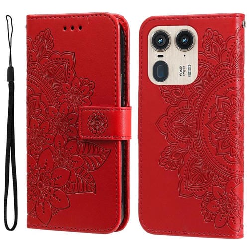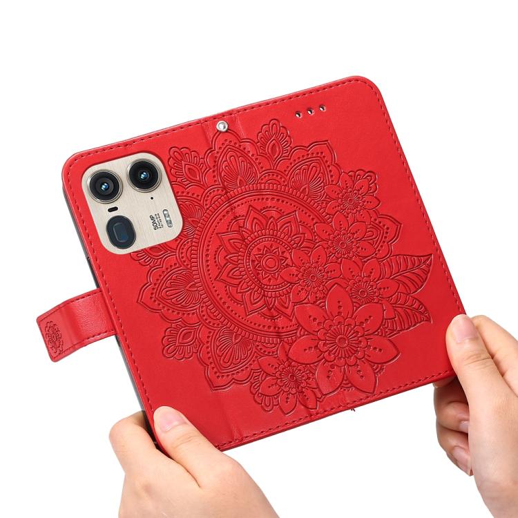 Funda de Cuero con Relieve de Flores de Siete Pétalos para Motorola Edge 50 Ultra / X50 Ultra (Rojo)
