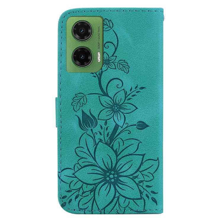 Funda de Cuero con Relieve de Lirio para Motorola Moto G35 (Verde)