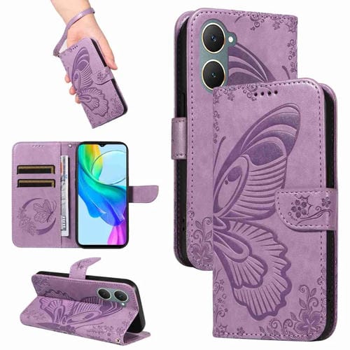 Funda de Cuero con Relieve de Mariposa para Vivo Y03 4G (Morado)