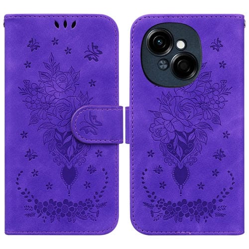 Funda de Cuero con Relieve Mariposa y Rosa para Tecno Spark Go 1 Pop 9 Pro (Morado)