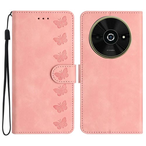 Funda de Cuero con Relieve de Siete Mariposas para Xiaomi Poco C61 (Rosa)