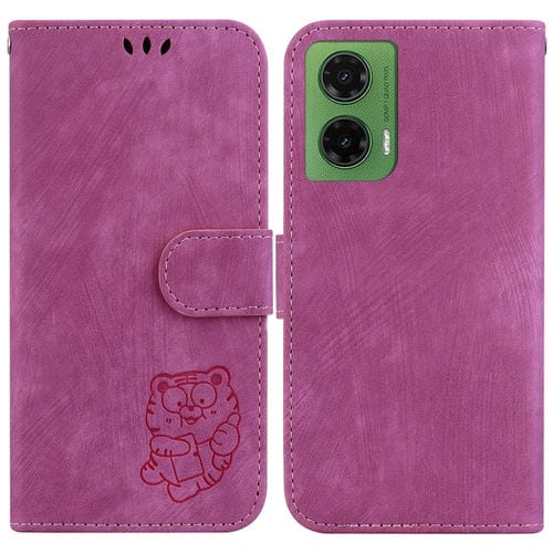 Funda de Cuero con Relieve de Tigre para Motorola Moto G35 (Rosa Rojo)