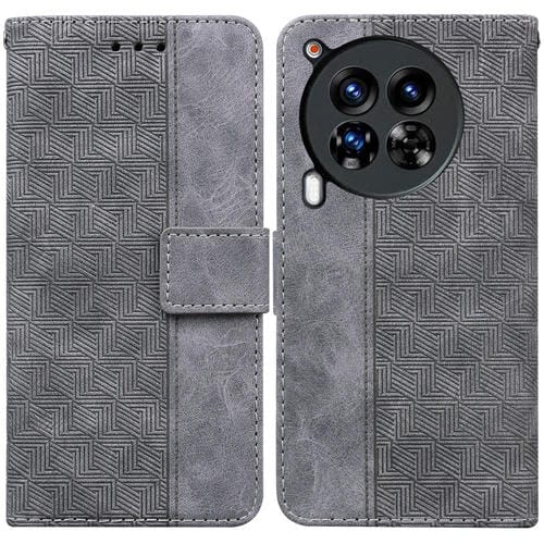 Funda de Cuero para Tecno Camon 30 Premier 5G con Relieve Geométrico (Gris)
