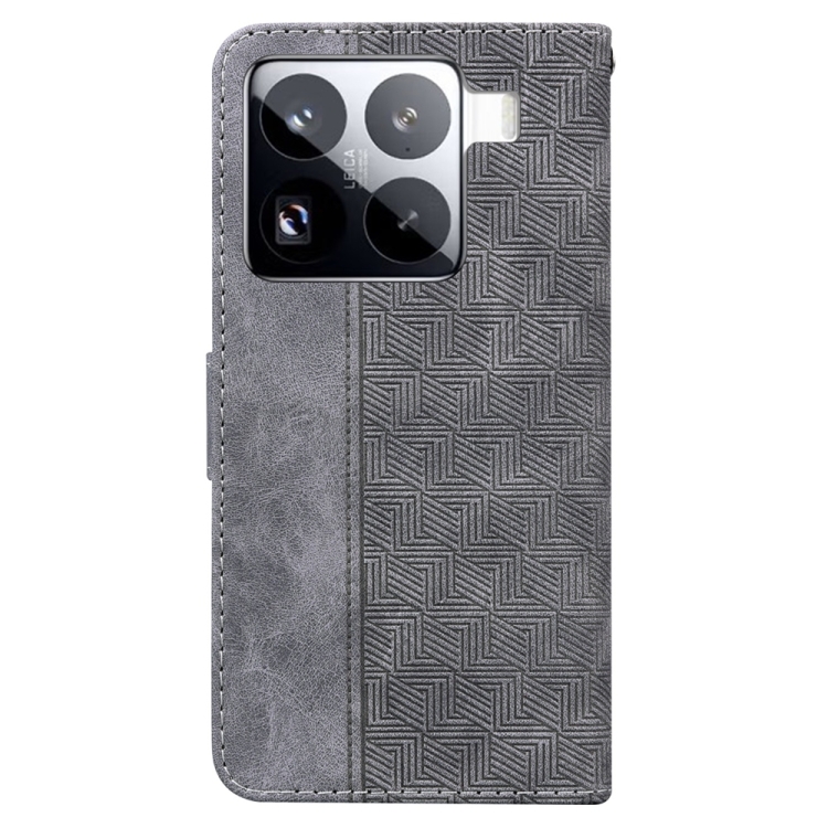 Funda De Cuero Con Relieve Geométrico Para Xiaomi 15 Pro (Gris)