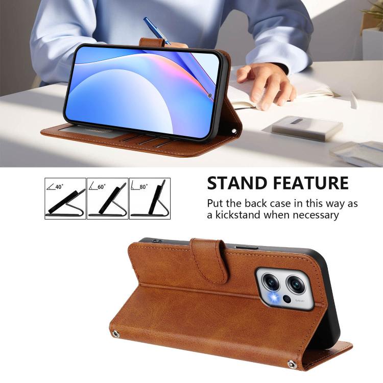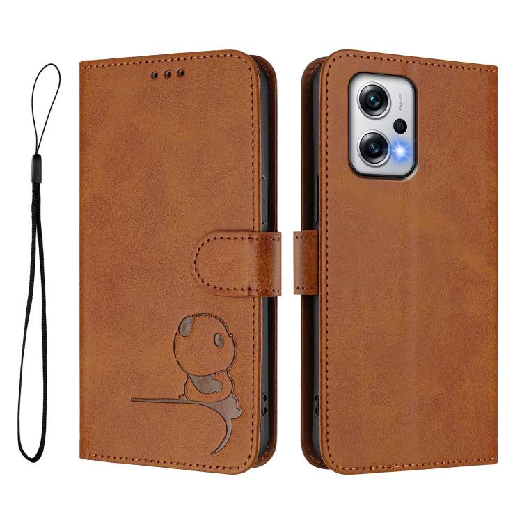 Funda de cuero con relieve RFID y cordón para Redmi Note 12T Pro / Poco X4 GT (marrón)