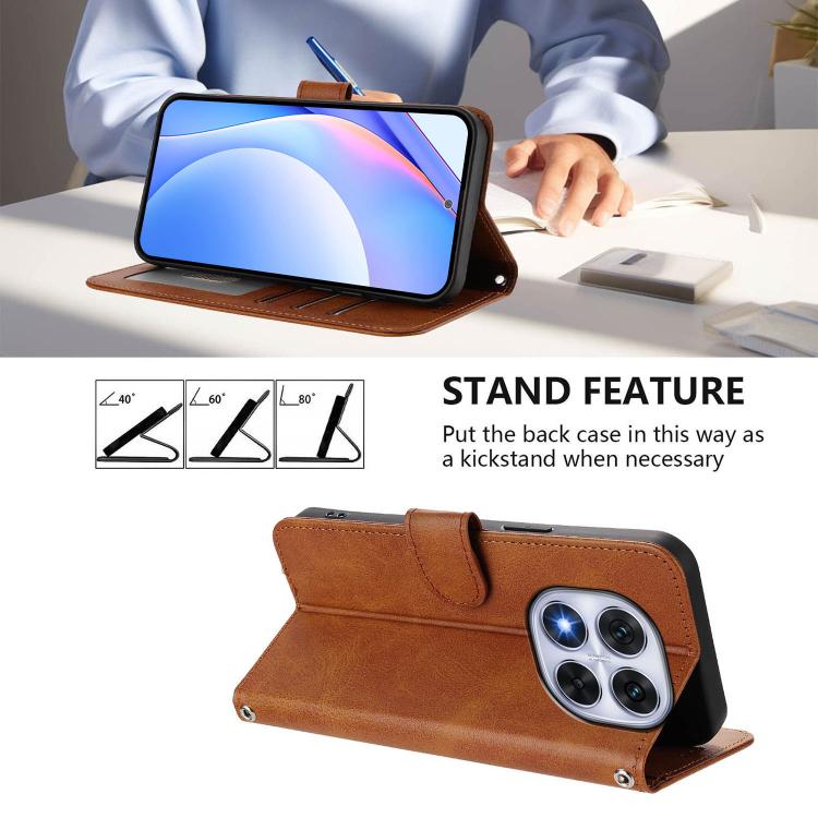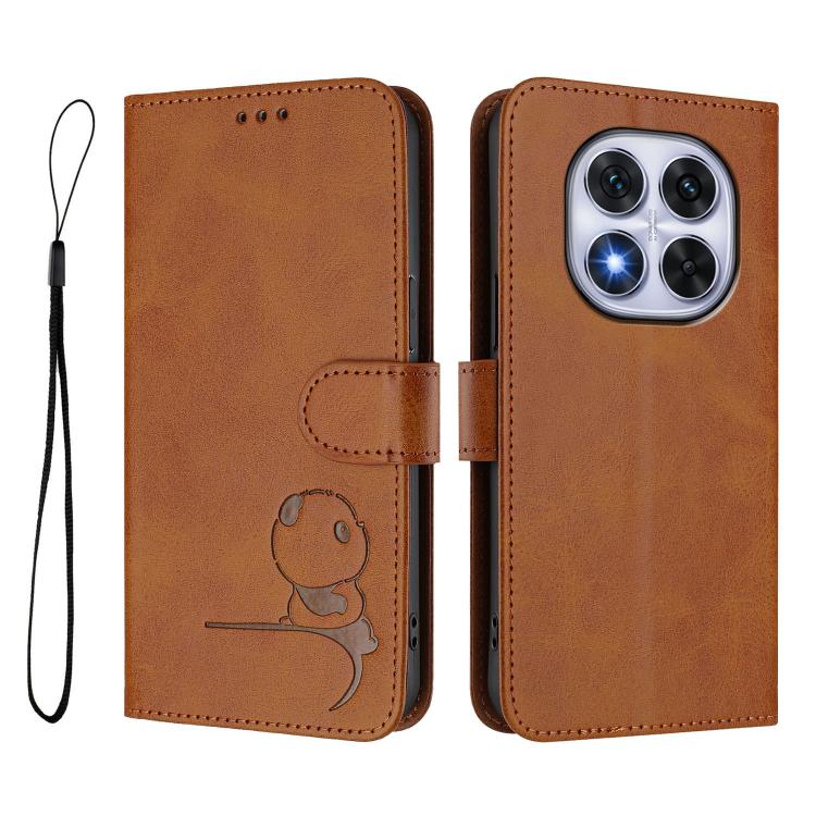 Funda de cuero con relieve RFID y cordón para Redmi Note 14 Pro 5G / 14 Pro+ 5G (marrón)