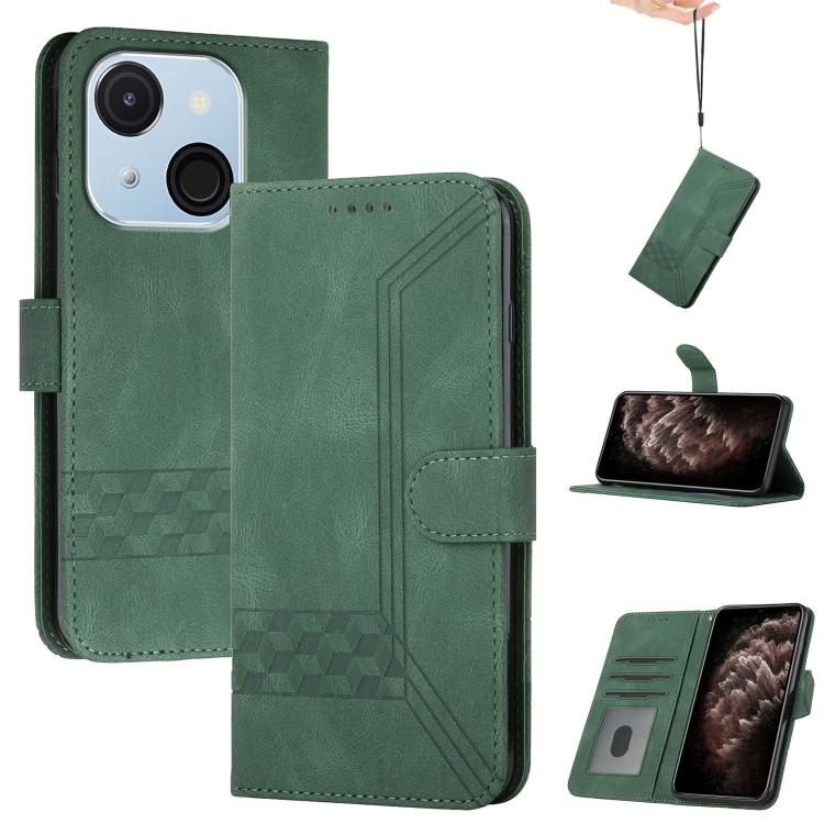 Funda de Cuero con Tapa Cúbica para Teléfono Itel A50C (Verde)