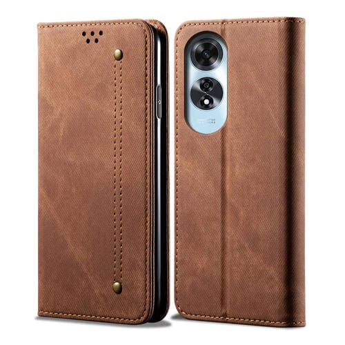Funda de Cuero con Tapa Horizontal y Textura Vaquera para Oppo A60 (Marrón)