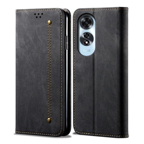 Funda de Cuero con Tapa Horizontal y Textura Vaquera para Oppo A60 (Negro)