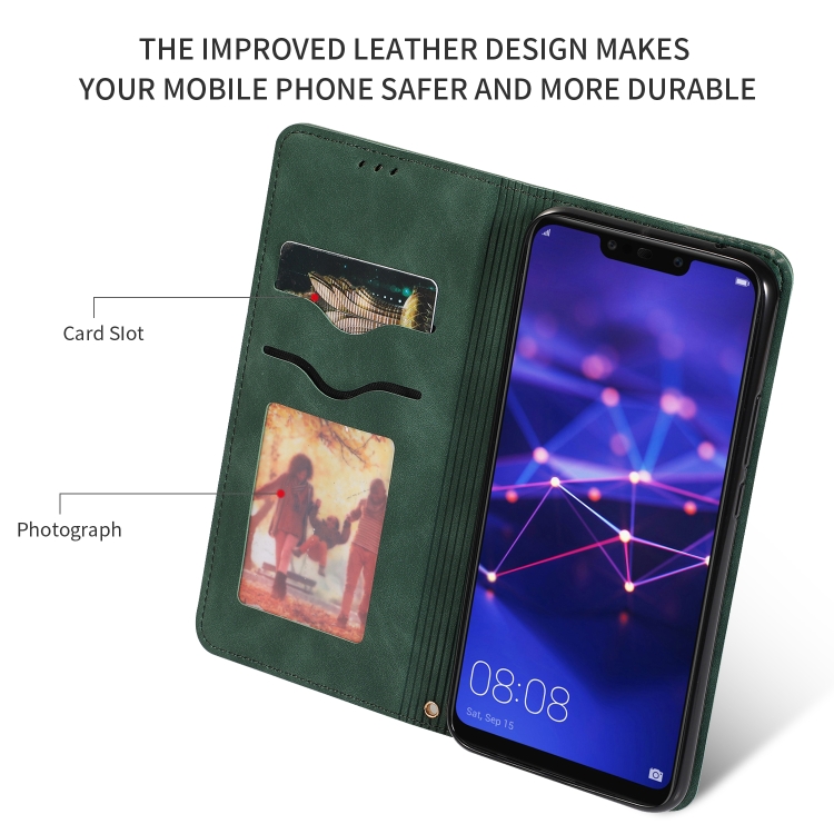 Funda de Cuero con Tapa Horizontal Magnética para Huawei Mate20 Lite (Verde Militar)