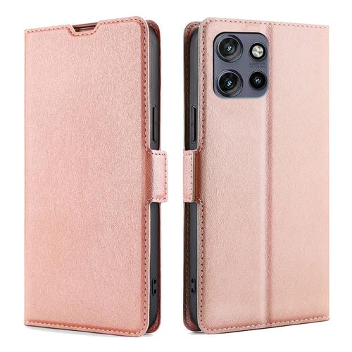 Funda de Cuero con Tapa Horizontal y Hebilla Lateral para Motorola Edge 50 Neo 5G (Oro Rosa)