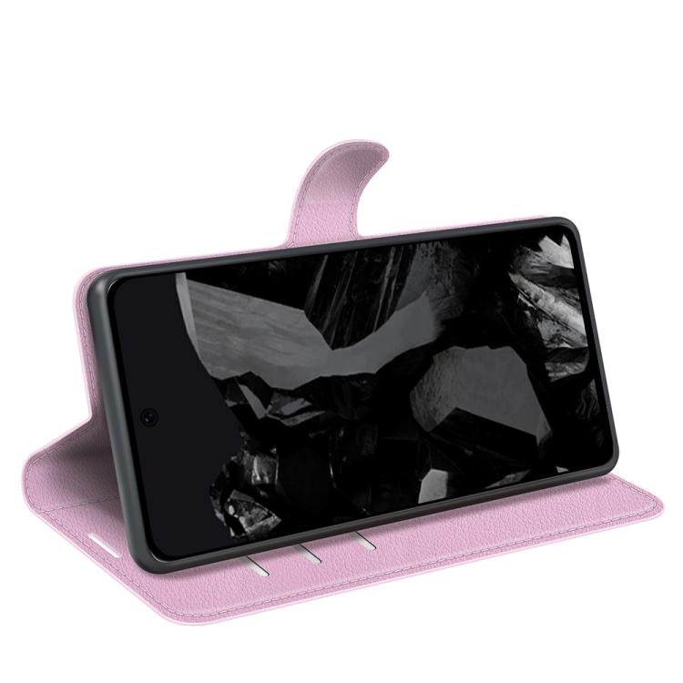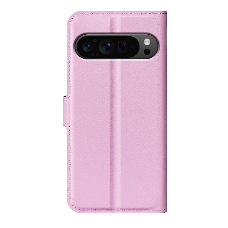 Funda de Cuero con Tapa Horizontal y Textura de Lichi para Google Pixel 9 Pro XL con Soporte (Rosa)