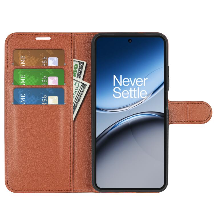 Funda de Cuero con Tapa Horizontal Textura Lichi para OnePlus Nord 4 con Soporte (Marrón)