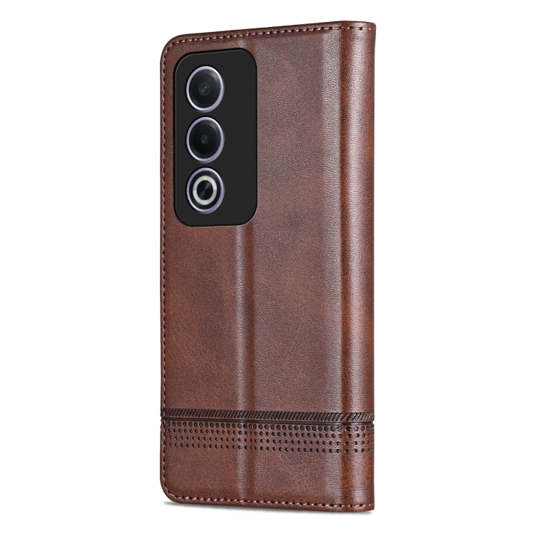Funda de Cuero con Tapa Magnética con Textura de Piel de Becerro Azns para Oppo A3 Pro 5G Global (Marrón Oscuro)