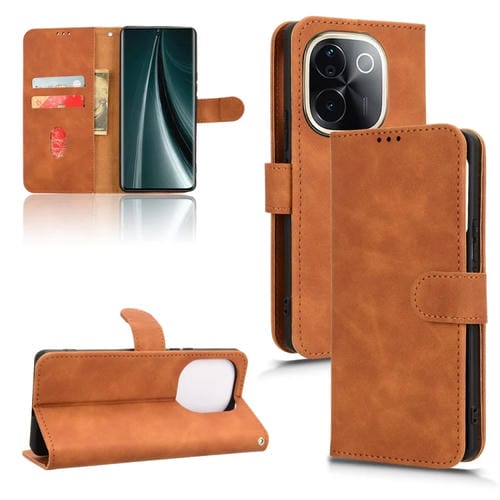 Funda de Cuero con Tapa Magnética para Teléfono Vivo T3 Pro 5G con Tacto de Piel de la India (Marrón)