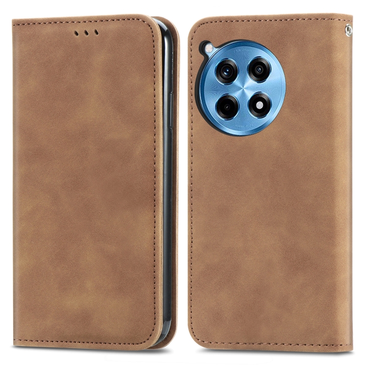 Funda de Cuero para OnePlus Ace 3 Pro con Tapa Magnética y Tacto Retro (Marrón)